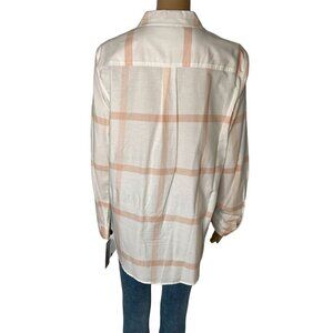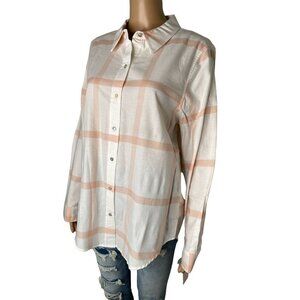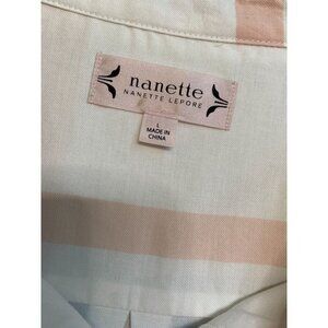 Nanette Lepore 100% Cotton Long Sleeve Button Down White Blush Pink Size L