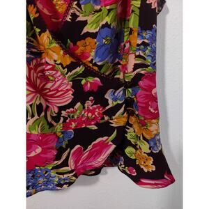 Nanette Lepore 100% Silk Black Pink Multi Floral Flutter Sleeve Faux Wrap Top 2