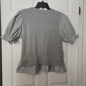 Nanette Lepore 2 In 1 Sweater Gray Black & White Stripe Underlay SS Size Large