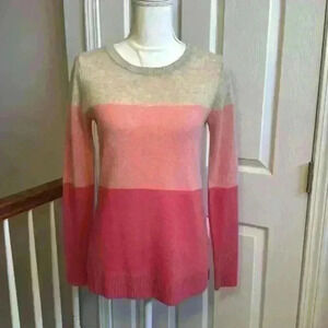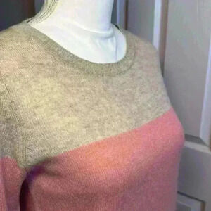 Nanette Lepore 2-Ply 100% Cashmere Knit Crew Neck Beige/Pink Sweater Women Small