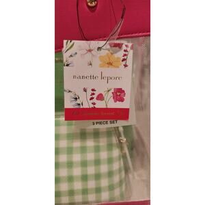 3pc bag set from Nanette Lepore. Mesh tote bag trimmed in pink, green checked shoulder bag, green crossbody. Color style is Parakeet. Retail value is $128