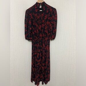 Nanette Lepore 4 Tie Mock Neck Smocked Pleated Long Sleeve Dress Floral