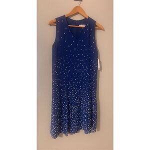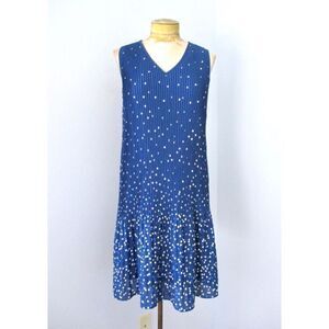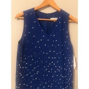 Nanette Lepore 8 Drop Waist Accordian Pleat Mini Dress Blue White Polka Dot Twee