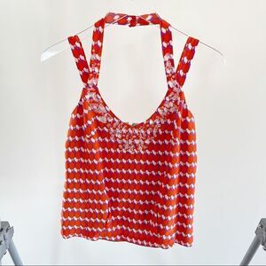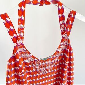 Nanette Lepore Beaded Silk Halter Tank Top 0