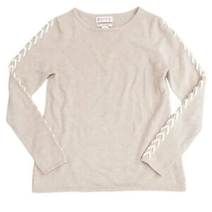 Nanette Lepore Beige Braid Detail 100% 2-ply Cashmere Sweater S