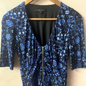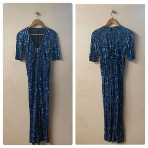 Nanette Lepore Black & Blue Printed V-Neck JumpSuit Size 2 EUC