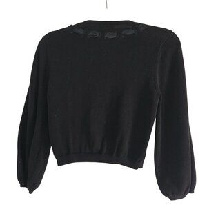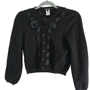 Nanette Lepore Black Covered Button Cropped Cardigan Sweater Silk Ribbon Size S
