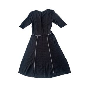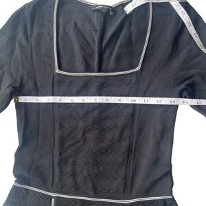 * Nanette Lepore dress, black fit and flare dress, square neck midi dress, elegant textured dress, cocktail dress, semi-formal eveningwear, feminine silhouette, XS dress, vintage-inspired style, romantic 3/4 sleeve dress, retro square neckline, waist-defining dress, classic chic dress, timeless party outfit