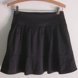 Nanette Lepore Black Flared Mini Skirt Size 0 26” Waistband Rear Zipper
