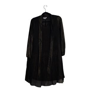 Nanette Lepore Black & Gold Sparkle Swing Dress with Tie Neck