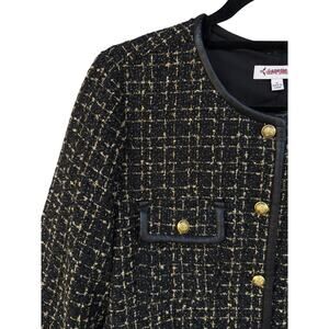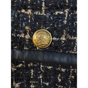 Nanette Lepore Black Gold Tweed Jacket Faux Leather Trim Buttons Sz 8 Career