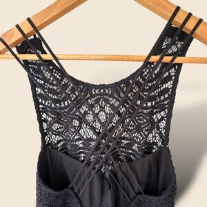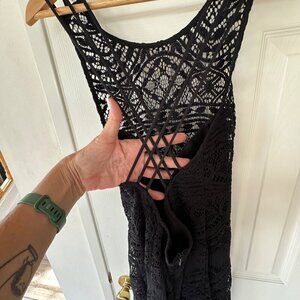 Nanette Lepore Black Lace Overlay Whimsygoth Dress Strappy Back Lined Size 8