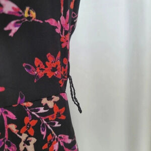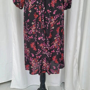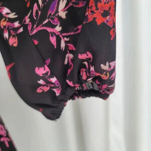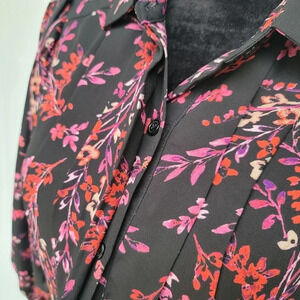 Nanette Lepore Black Pink Red Floral Long Sleeve Button Up Shirt Dress Sz 6