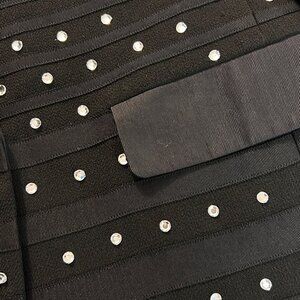 Nanette Lepore Black Rhinestone Blazer With Satin Lapels & Pocket Details