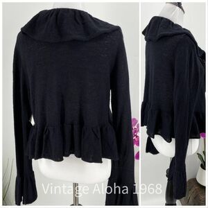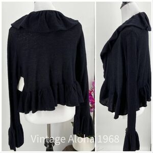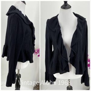 Nanette Lepore Black Ruffel Long Sleeve Open Front Sweater