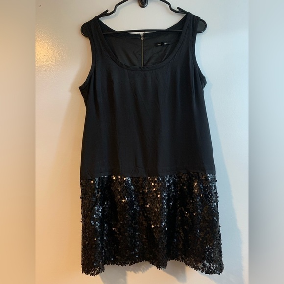 Nanette Lepore Black Silk Sequin Sleeveless Shift Mini Dress Size 8