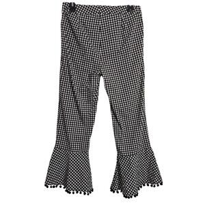 Nanette Lepore Black White Check Ball Fringe Wide Leg Pants Sz 6