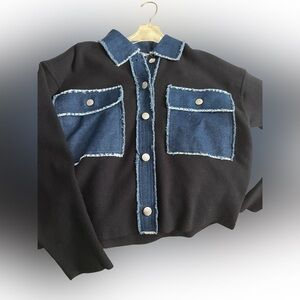 Nanette Lepore Black/Denim Contrast Streetwear Casual Trucker Jacket SZ-M