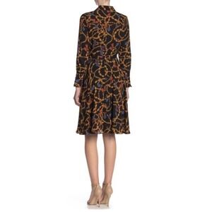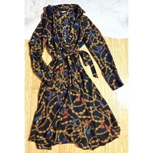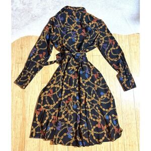 Nanette Lepore Black/Gold Chain, Tassel Black Long Sleeve Button Down Dress Sz 2