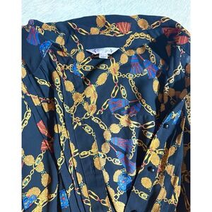 Nanette Lepore Black/Gold Chain, Tassel Black Long Sleeve Button Down Dress Size 2