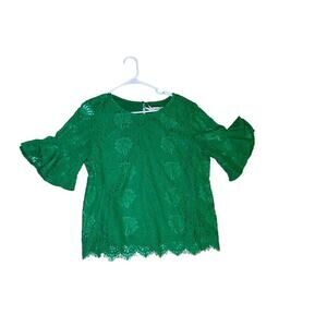 "Nanette Lepore Blouse Top Women's L Green Floral Crew Neck Bell Sleeve Pullover.