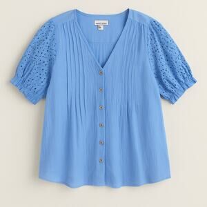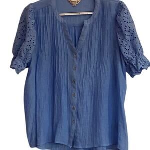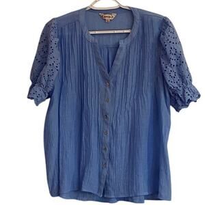 Nanette Lepore Blue Eyelet Sleeve Button Front Blouse Women’s Size L
