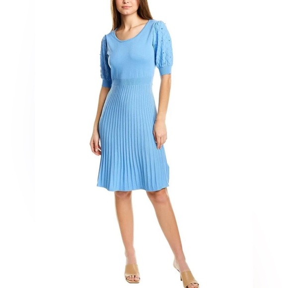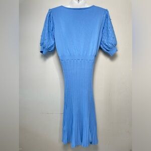 Nanette Lepore Blue Pearl Puff Short Sleeve Cinched Waist Pleated Dress Large