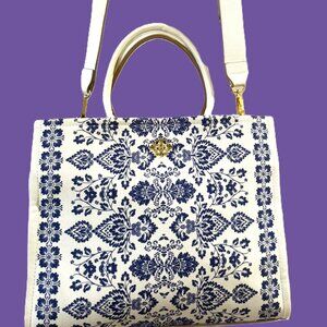 Nanette Lepore Blue & White canvas and Leather Hand Bag with Shoulder Strap NWOT