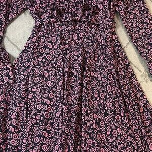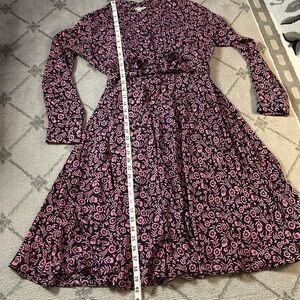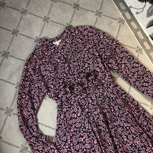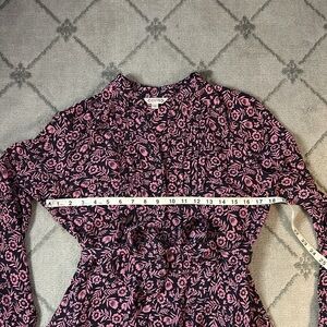 This elegant dress by Nanette Lepore features a pleated design in a charming blue and pink color palette. With its long cuffed sleeves and crew neckline, it offers a sophisticated yet casual style perfect for work or everyday wear. The a-line silhouette adds a touch of grace, making it a versatile addition to any wardrobe.
