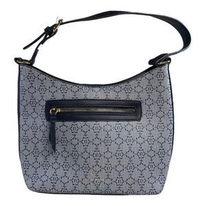 This fashionable Nanette Lepore shoulder bag is a must-have for any woman on the go. With its stylish logo all over print and navy accents, this bag is perfect for any occasion, whether it's for travel, casual outings, or business meetings. The bag features a sturdy zip closure and a lightweight design that makes it easy to carry around all day.