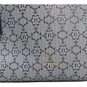 Nanette Lepore Blue Purse Shoulder Hand Bag Navy Accents Logo All Over Print