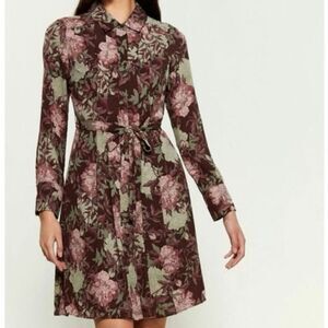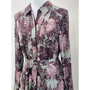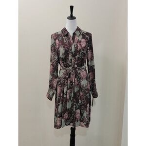 NWT Nanette Lepore Boho Pleated Belted Midi Dress Floral Full Front Button Down Long Sleeve Collared Sheer Lined Artsy Style Size 10