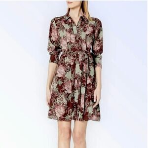 Nanette Lepore Boho Pleated Belted Midi Dress Floral Full Front Button Size 10