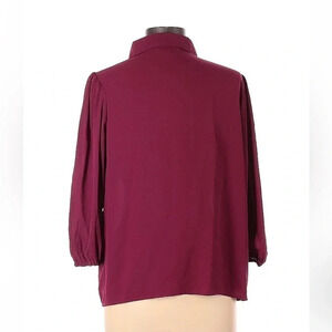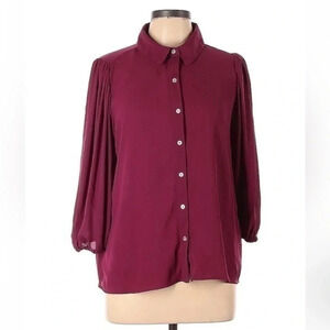 Nanette Lepore Burgundy Elbow Puff Sleeve Button Front Blouse Size Large L