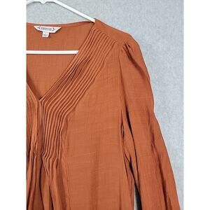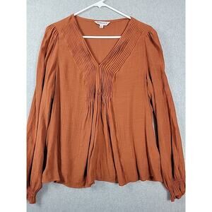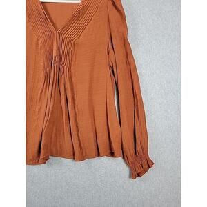 Nanette Lepore Burnt Orange LS V Neck Pleated Boho Peasant Blouse Women's Large