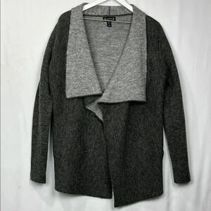 Nanette Lepore Cardigan Gray L Open Front Shawl Collar Pockets Soft 23% Wool EUC