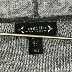 Nanette Lepore Womens Cardigan Gray L Open Front Shawl Collar Pockets 23% Wool Warm Cozy Soft EUC