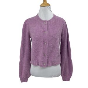 NANETTE LEPORE CARDIGAN WOMENS S SMALL ORCHID ICE BUTTON FUZZY CROPPED SWEATER