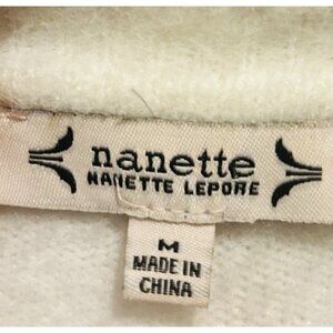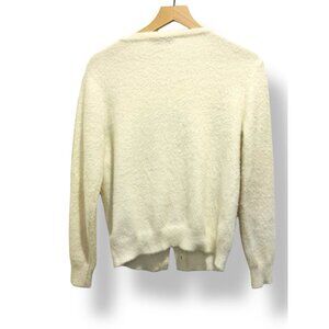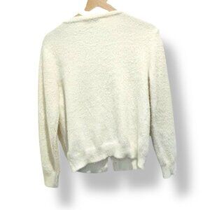 Nanette Lepore Chain Trim Eyelash Cardigan Sweater White Gold Buttons Sz Medium