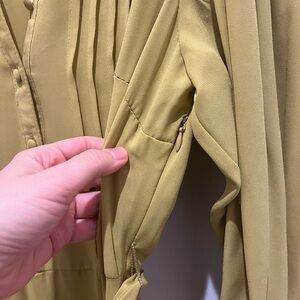 Chic long sleeve dress with pleated front. Buttoned neckline. Stylish and versatile.