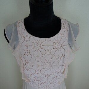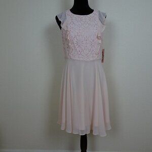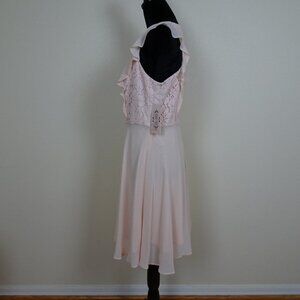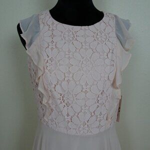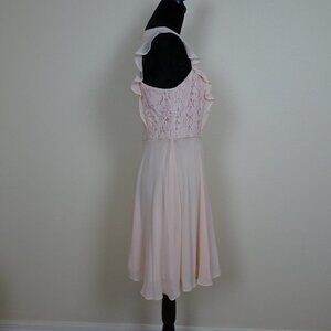 Nanette Lepore Chiffon Dress Women's Size 8 Pink Ruffle Lace Wedding Guest