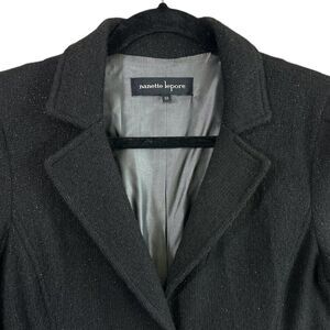 Nanette Lepore Coat Wool Blend Size 10 Black Silver Metallic Pockets