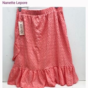 Nanette Lepore Coral Pink Flamingo Eyelet Ruffled Skirt NWT 78.00