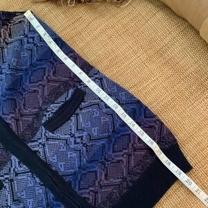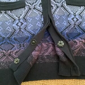 This pretty cardigan is perfect with a pair of jeans. I can’t find the size tag on it so look at the measurement pics before ordering. It has snaps that are concealed when snapped, see last pic. Non smoker home