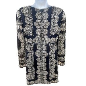Nanette Lepore Country Lane 100% Silk Black & White Dress Loose Fit Lightweight