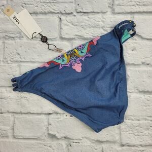 Nanette Lepore Dazed Denim Blue Embroidered Charmer Bikini Bottom size Large