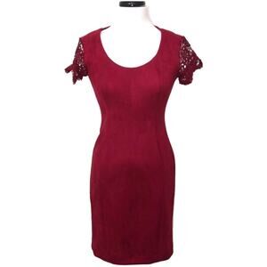 Nanette Lepore Deep Red Faux Suede Lace Sleeve Dress 2 NWOT
