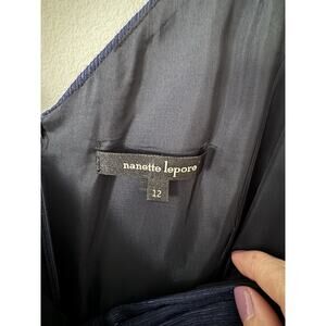 Nanette Lepore Dress 12 Dark Blue Navy Sheath Cocktail Evening Ruched Evening. Condition is Pre-owned. Shipped with USPS Ground Advantage.