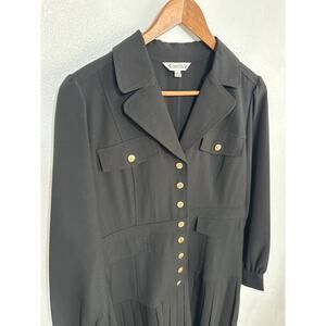 Nanette Lepore Dress 8 Black Blouson Pleated Skirt Gold Buttons Classy Designer