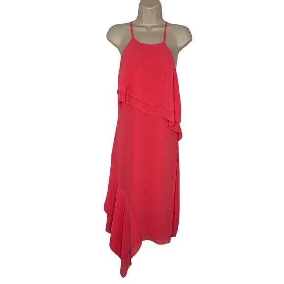 Nanette Lepore Dress Size 10 Asymmetrical Layered Ruffle Pink Flamingo Dream NWT